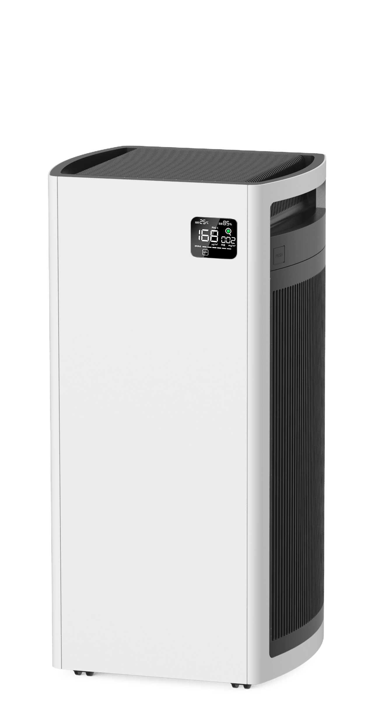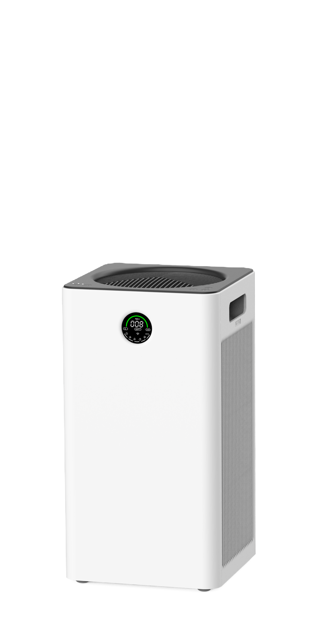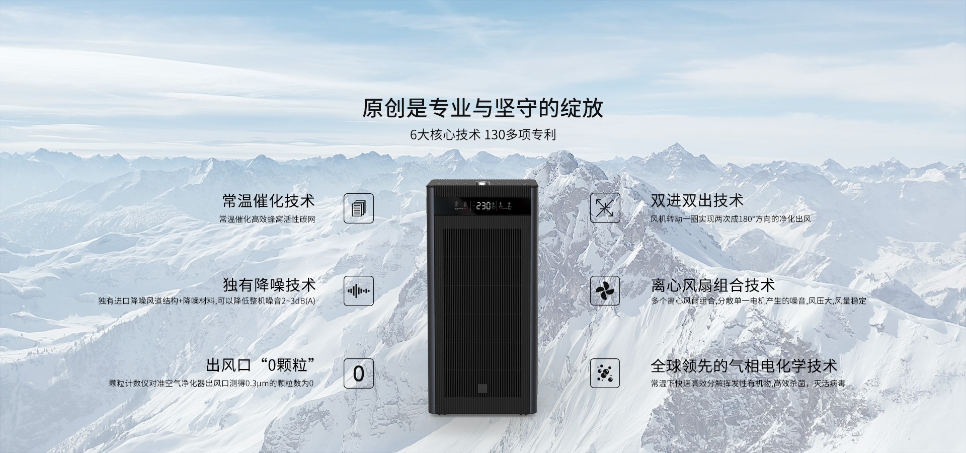 采用PureMate“0顆粒”技術,可保障PureMate空氣凈化器出風口的0.3μm顆粒數測試數值為零雙進風雙出風 風道結構及凈化裝置(專利技術)